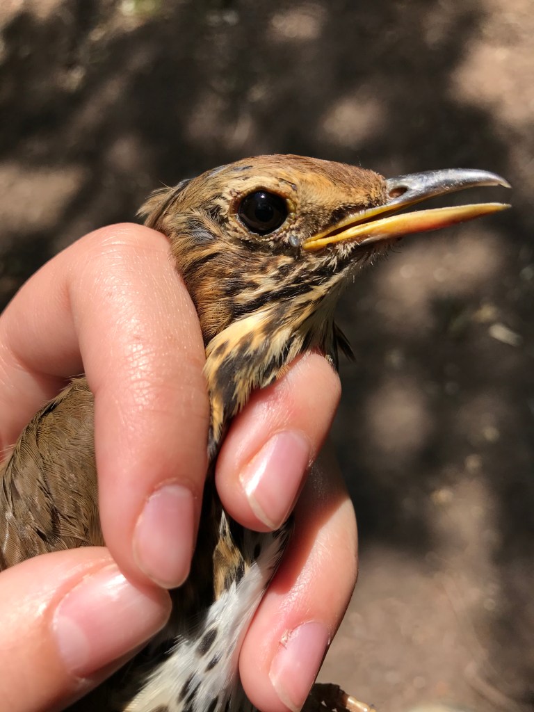 The birds aren’t harmed or hurt in any way when they are in the mist nets, held in the hand or having the ring put on!