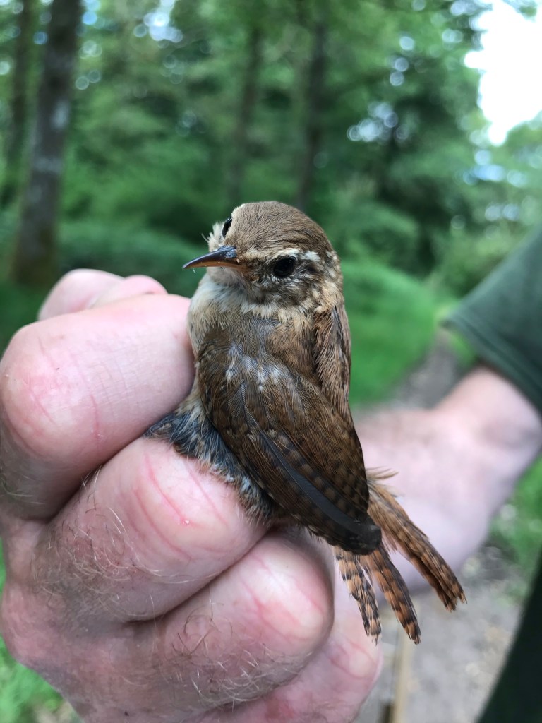 The team of ringers had previously rung all the chicks in their nest boxes throughout the wood and the data we collected today gives an indication of the species population within the wood overall.