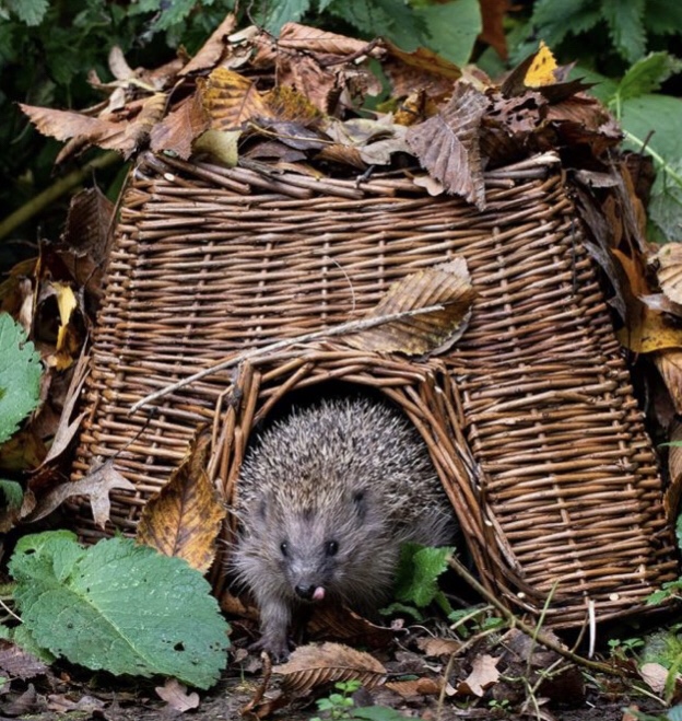 Hedgehog houses: Make or buy a hedgehog house to put in your gardens! Hedgehogs will often nest in these houses from November to April when sleeping through the cold months! Leave a bit of your garden to grow wild and put out a bit of dry leaves for bedding! These are an attractive nest as well as homes for the invertebrates that hedgehogs like to eat! Making an artificial home can be as simple as placing a board against a wall!