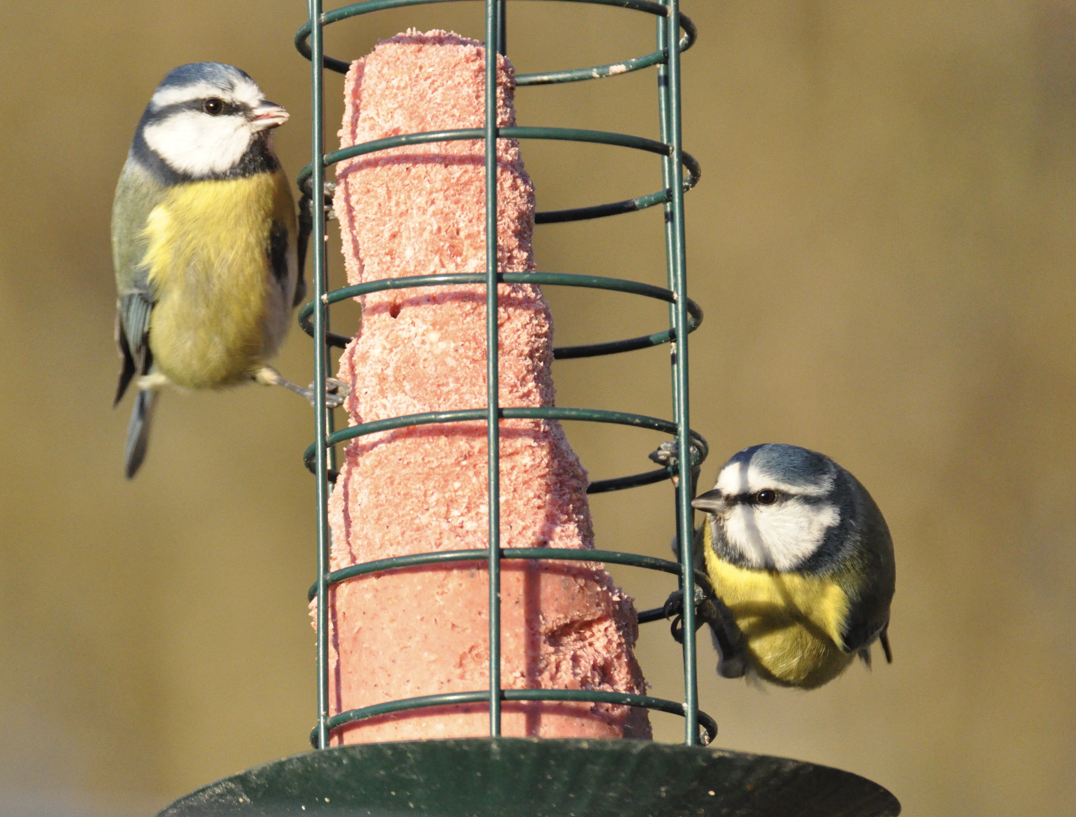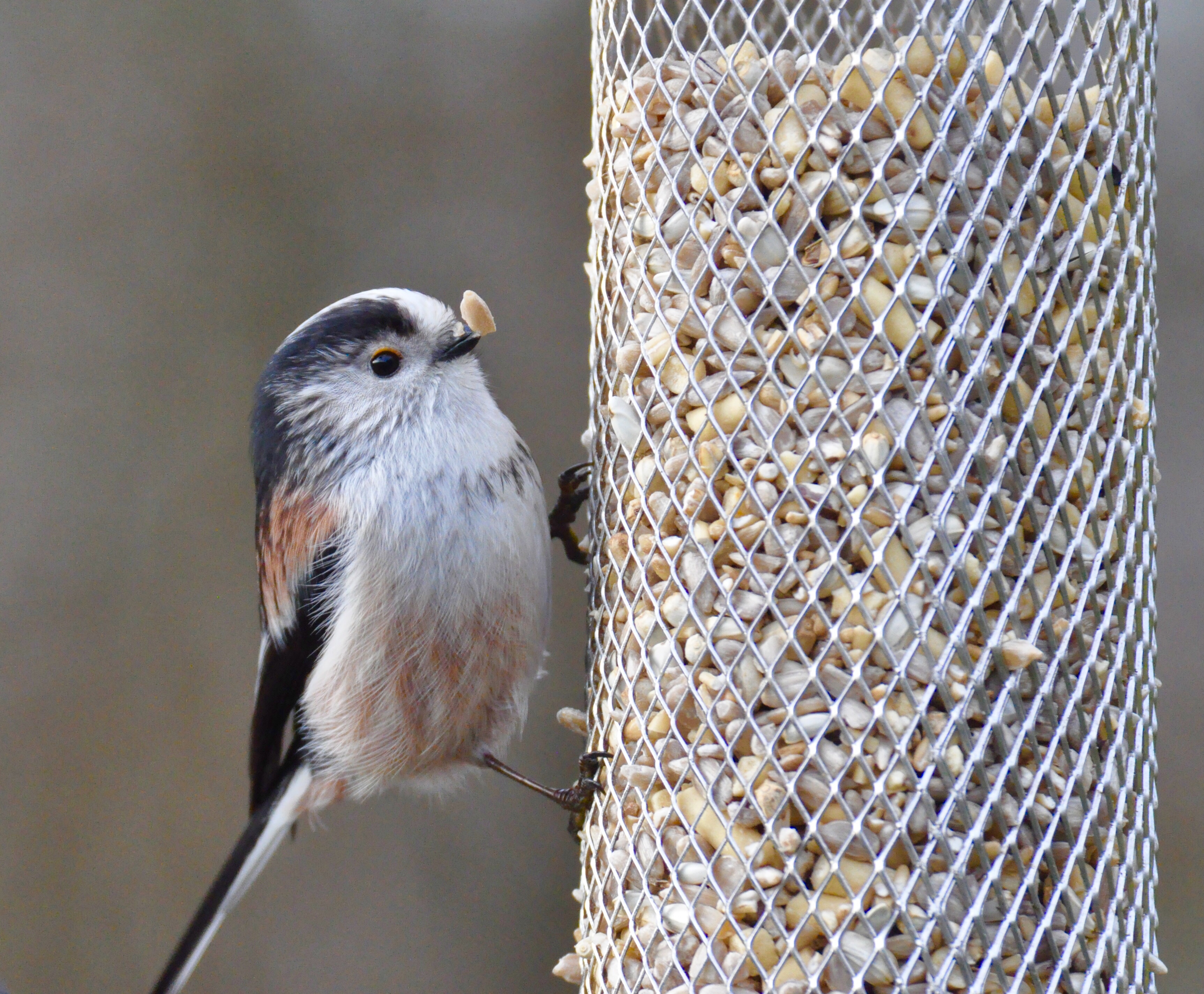 I have been watching a flock of 6 long-tailed tits all on a feeder at the same time, a pair of great spotted woodpeckers slowly building up the courage to come closer and nuthatches squabbling on the bird table!
