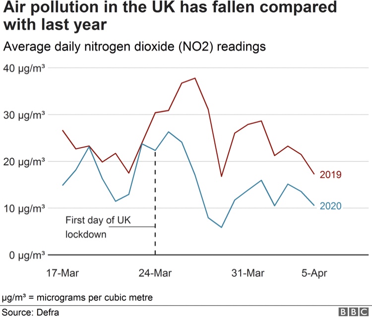 Lets start off with pollution from planes and vehicles. With most people working from home and going abroad out of the question, a lot less people were travelling. This ultimately lead to a temporary reduction in daily global CO2 emissions! It is thought that the daily emissions decreased by 17% by early April 2021 compared with the 2019 levels which is brilliant!