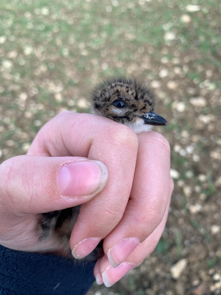 So today we drove out and started the mission! We only ring the chicks as the adults fly up as soon as you get out of the car. But the chicks are very hard to find, they crouch down and blend in with the ground very very well!