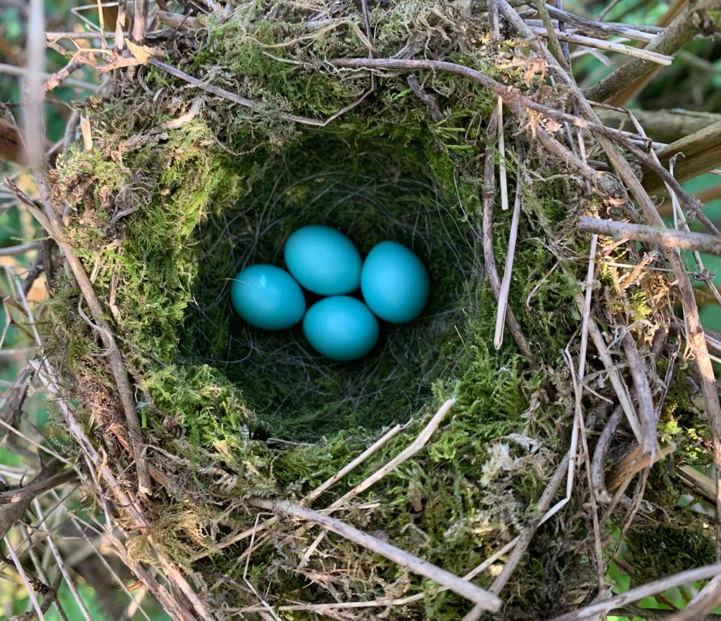 Robin nest – we found this nest in the roof of our porch where the building work is still open!