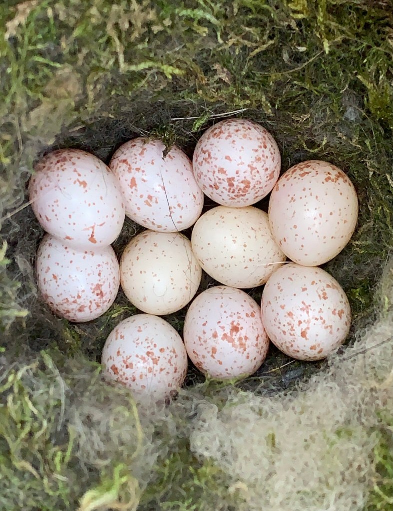 Coal tit nest – I haven’t had a coal tit in one of the boxes before so I was very excited when I saw a pair flying in with nesting material and soon laying a clutch of eggs!