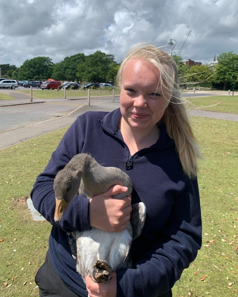 Research has shown that some of the UK’s resident Greylags travel up to 500km to moult, from their breeding sites. Moult migrations can be understood using colour ringing: a process where a metal ring and a colour ring (which are easy to read so lead to resightings) are attached to a bird’s leg by licensed ringers. Previously, no Greylag geese had been ringed in Dorset, so their movements remained unknown. As a result, Thomas set up the project to find more about the movements of the individuals who come to moult at Poole Park. Thomas, is a 22 year old ringer from Bournemouth Uni, and I know him through his girlfriend Charlotte, who is a member of our ringing group, and he often comes out with us too.
