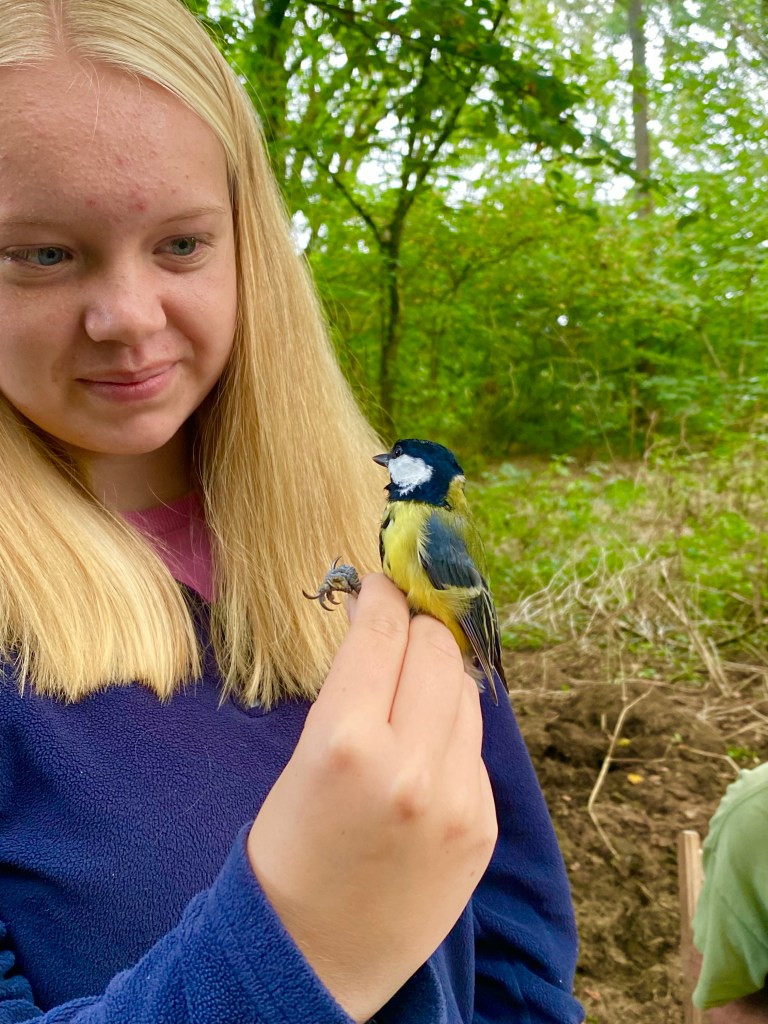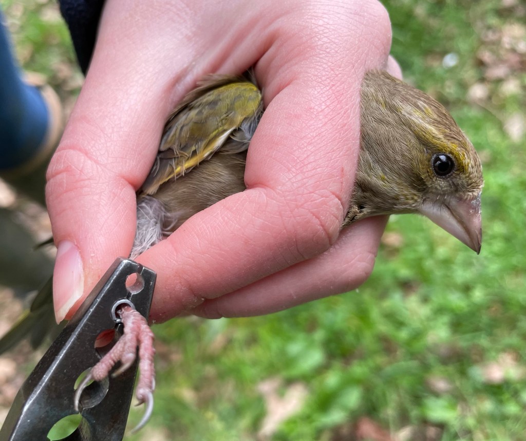 So what is bird ringing? Bird ringing is the attachment of a small uniquely numbered metal ring to the leg of a wild bird that has been stamped with its own number. The rings are super tiny and really light and would feel like us wearing a watch and don’t harm the bird or slow them down in any way and the pliers we put the ring on with don’t hurt them at all either!