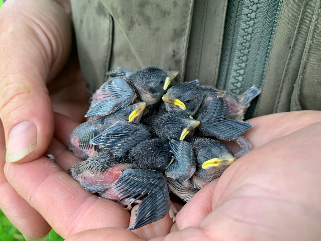 We can also ring pulli which is the term for baby birds in the nest. We usually ring pulli from nest boxes such as tits and raptors but occasionally ring chicks from open nests too. Ringing baby birds is really important as it can tell us about best successes and chick survival and if they are caught later in their lifetime, we can see where they have gone, how far they have dispersed and also how old they are!