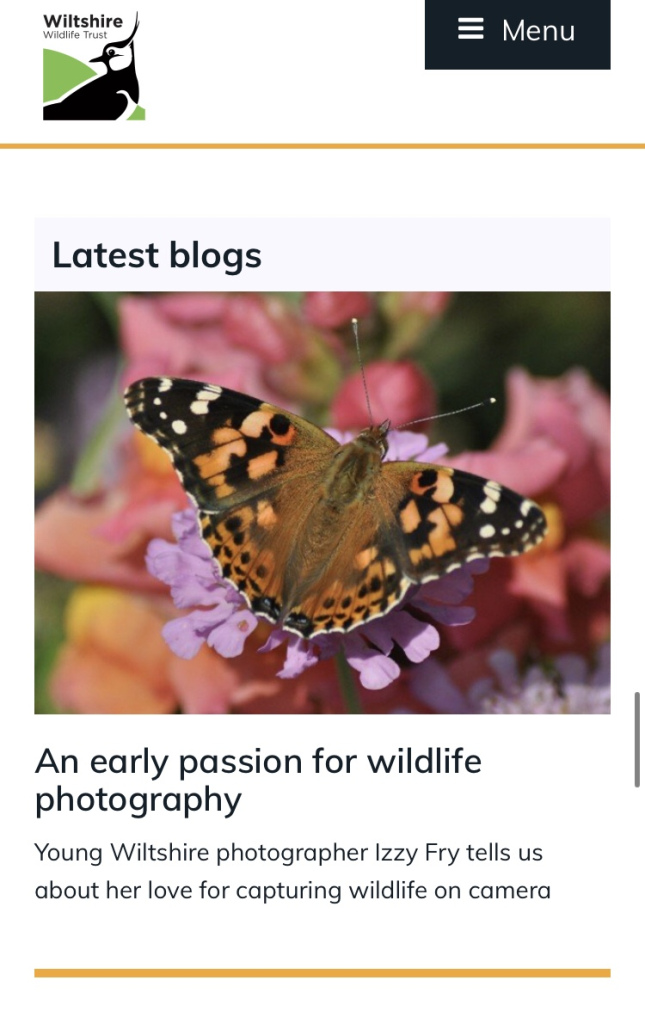 I have blog post for the Wiltshire Wildlife Trust (my local wildlife trust) which has been published on their website! It is all about me and my photography! I have written about how I began photography, my favourite things to photograph, the wildlife in my garden, my family's honeybee hive and much more! You can … Continue reading Wiltshire Wildlife Trust Blog