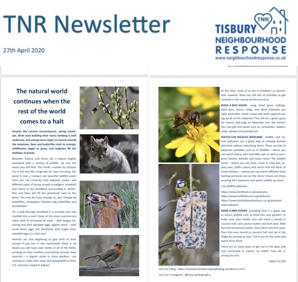 Tisbury Neighbourhood Response Newsletter : I was asked to write about nature and wildlife for a Covid-19 Volunteer Newsletter to spread positivity during this hard time! Alongside some of my photos, I wrote about Spring and how the natural world still continues despite the Coronavirus!