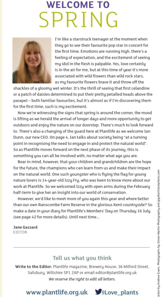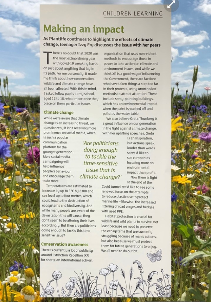 Plantlife: Before lockdown, I had the most amazing opportunity to work alongside the editor of the Plantlife magazine, Jane Gazzard – as soon as lockdown is over, I hope to be back! I was going into the Plantlife offices every week, working on my own features (some which will be published in the next few issues!). I have learnt so much, especially about writing techniques – how to be fun but factual and so much more!