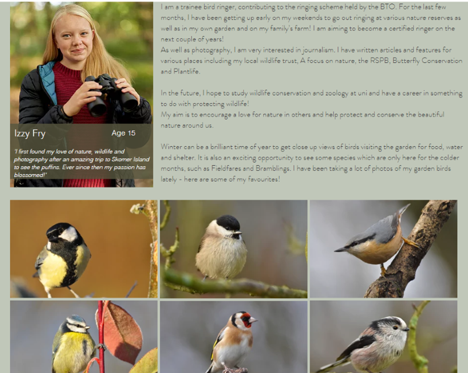 NG Kids Magazine : When I was 10 years old, I submitted an article about my visit to Elmley Nature Reserve alongside some of my photos! A couple of weeks later it was featured in the NG Kids Magazine! This was my first article, and beginning of my nature writing!