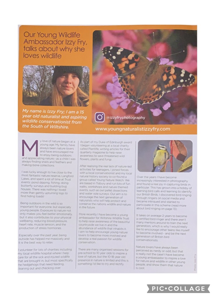 Wiltshire Wildlife Trust : I am a the young ambassador for the Wiltshire Wildlife Trust and have been writing blogs for their website!
