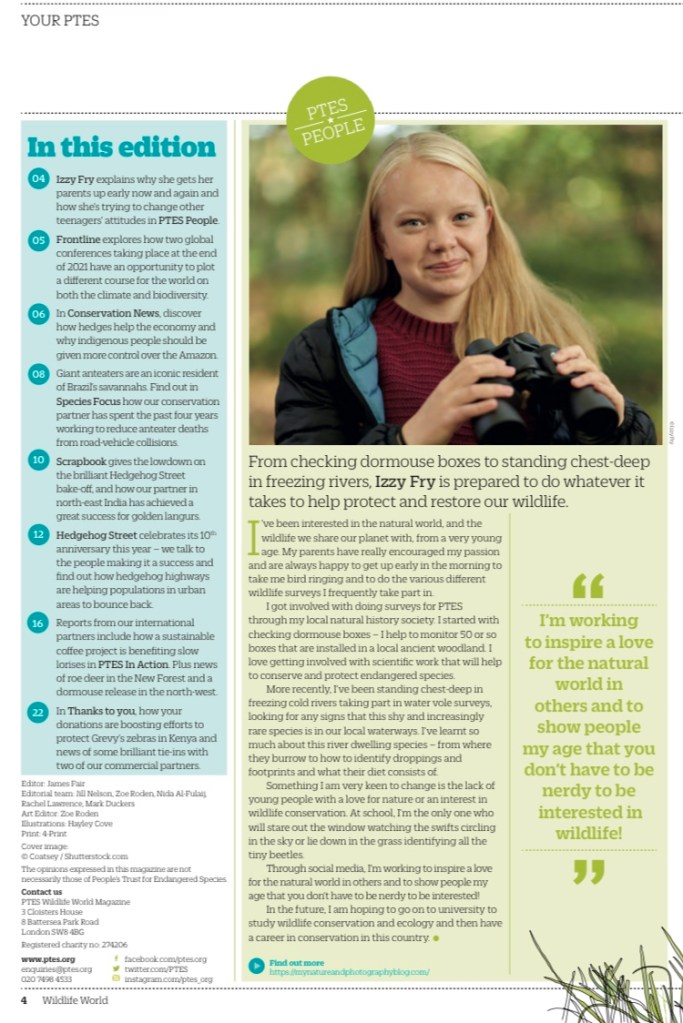 I also featured in the PTES magazine talking about what I do for wildlife!