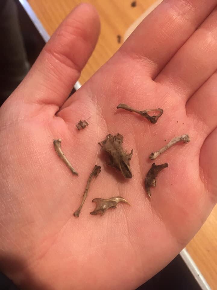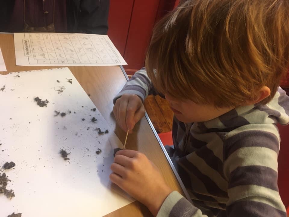 We found lots of little bones from small rodents in the pellets and learnt how to identify which animals they came from by their jaws, pelvises and skulls!