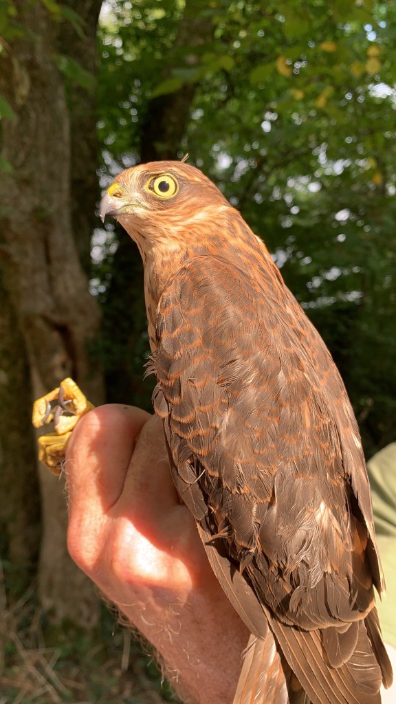 We caught and ringed a range of different species including chiffchaffs, goldcrests, treecreepers and nuthatches, but the fantastic highlight was a male Sparrowhawk!